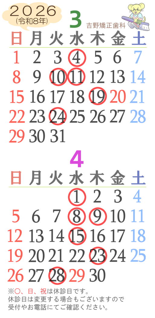 診療時間:平日 AM 9:50〜12:00 PM 1:50〜6:00 土曜 AM 9:50〜12:00 PM 1:20〜5:00 診療日は直前に変更になることがあります。 予約された方以外のご来院に当たっては、来院前にお問い合わせください。 ※医院の都合にて診療時間が短くなる日もございますが、ご了承のほどよろしくお願いいたします。