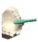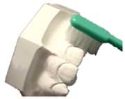 理想的な歯並びでは、歯ブラシを歯に当てると、きれいに歯の表面に当たりますが、デコボコした歯並びの場合、普通に歯ブラシを当てただけでは、歯に歯ブラシが当たらない部分が出てきます。 きれいにしようとすれば、縦にみがいたり、裏側からみがいたりしなければいけません。みがくのが大変ですし、時間も余計にかかりますが、それでも理想的な歯並びよりもきれいにならないのが普通です。 ですから叢生の歯並びでは、でこぼこした部分から、むし歯や歯周病(ししゅうびょう)が進んでいく事が多くなります。 |