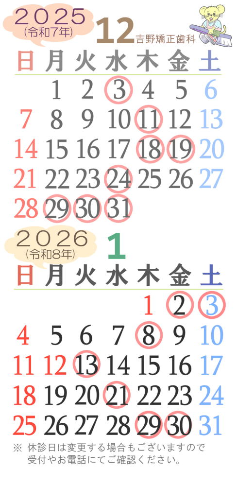 診療時間:平日 AM 9:50〜12:00 PM 1:50〜6:00 土曜 AM 9:50〜12:00 PM 1:20〜5:00 診療日は直前に変更になることがあります。 予約された方以外のご来院に当たっては、来院前にお問い合わせください。 ※医院の都合にて診療時間が短くなる日もございますが、ご了承のほどよろしくお願いいたします。